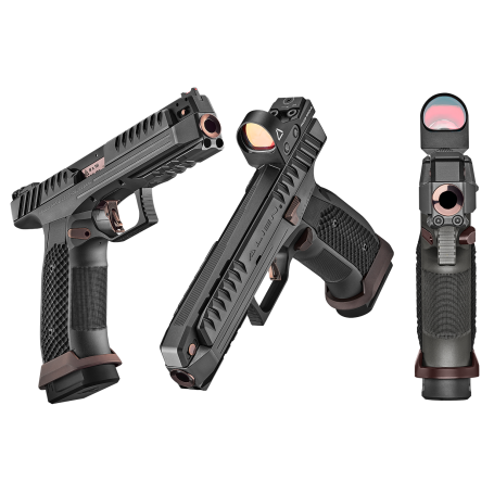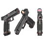 Disponible en quantités limitées, le kit complet Alien Laugo Arms édition Rose Gold est le pack ultime pour les passionnés et les tireurs compétitifs. Un rail supérieur de visée en fer et un rail supérieur optique équipés d’un viseur point rouge Laugo Arms sont tous deux inclus pour une polyvalence maximale. Un magwell et un système d’étui Elornis Industries complètent l’installation pour des performances optimales au champ de tir.